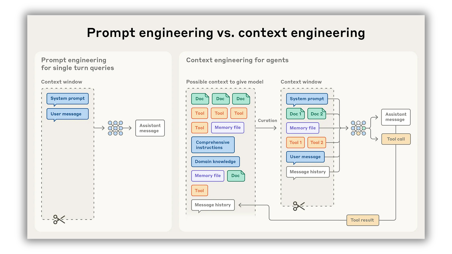 Here’s the uncomfortable truth: LLMs have an attention budget. Every extra token competes for limited working memory, so stuffing prompts, pasting entire docs, and hoarding examples dilutes the model’s focus. Anthropic just released an entire breakdown on “Effective context engineering for AI agents,” saying we should treat tokens as a finite resource you curate with intention.
