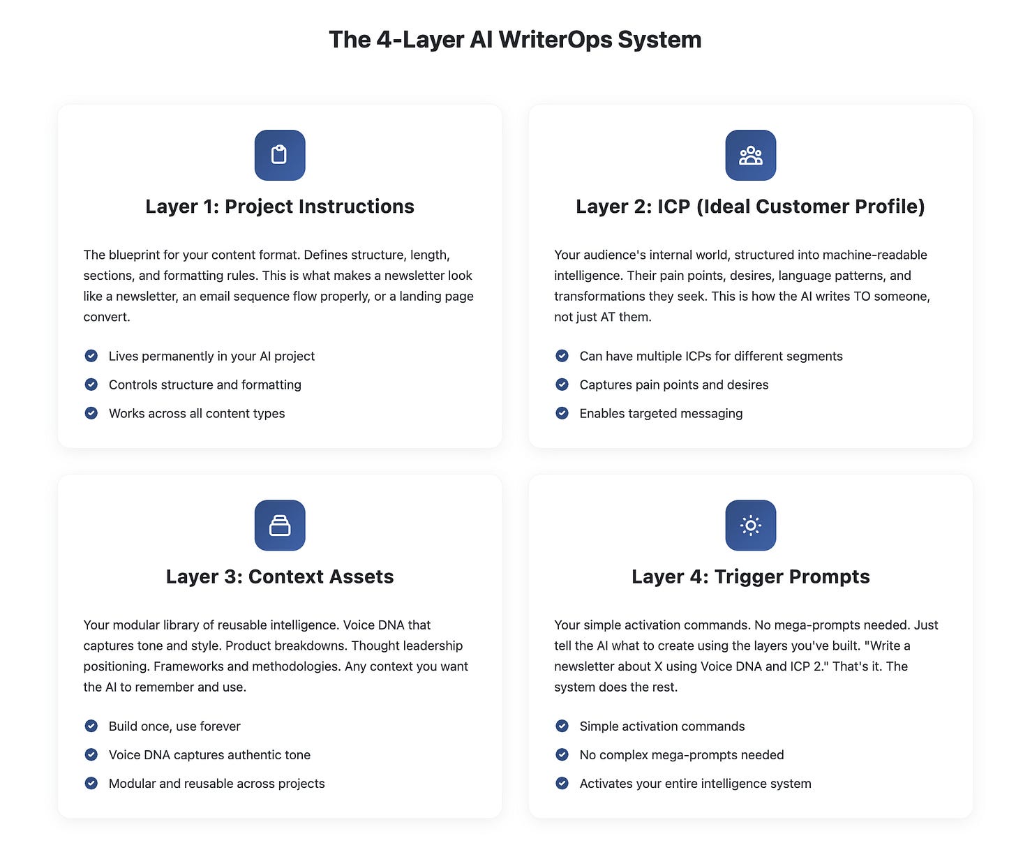 This is your master blueprint that goes in the custom instructions field. It tells the AI exactly what this project is for and how to operate within it.