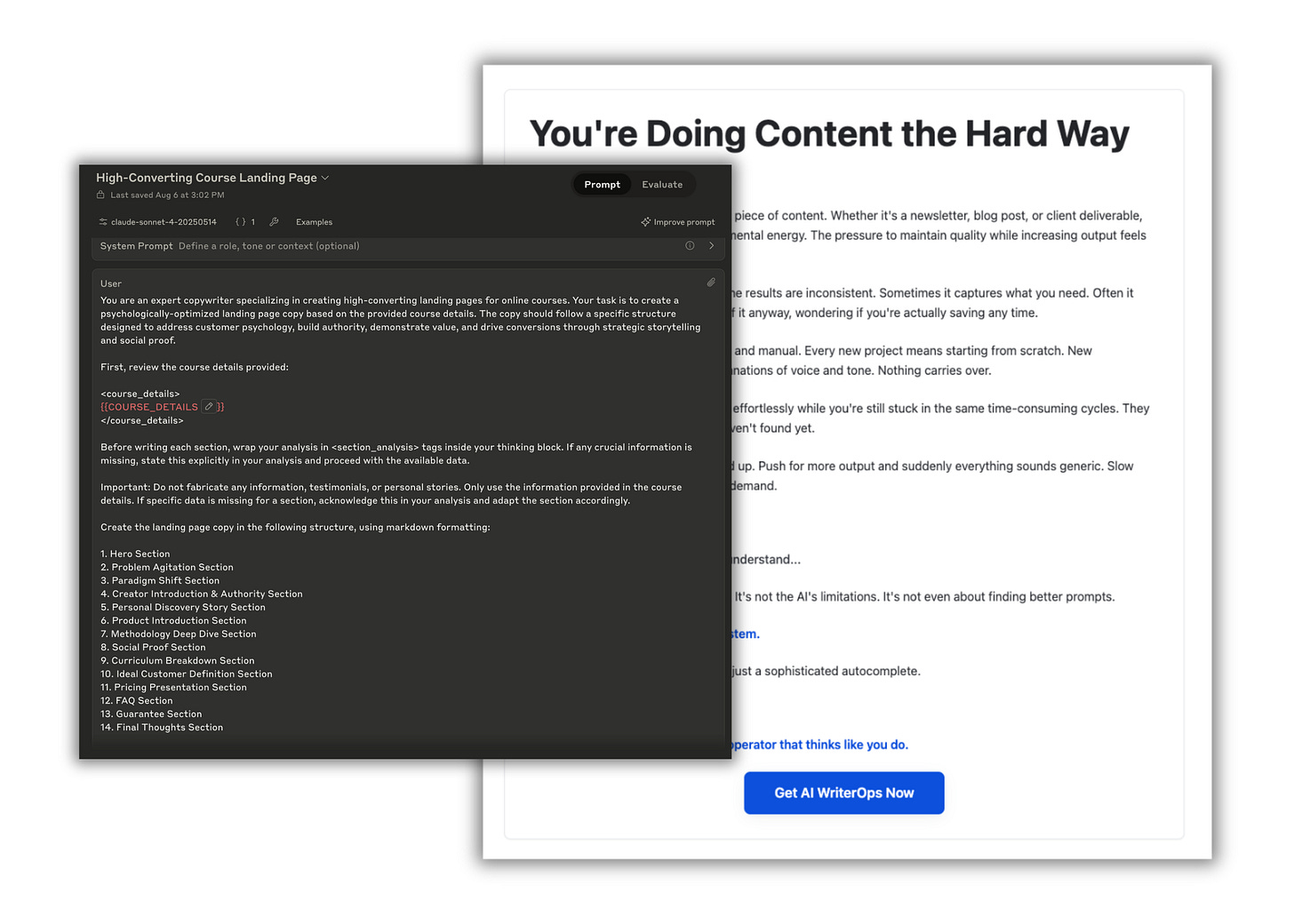 This prompt is specifically engineered for course landing pages. It structures your entire sales page using an exact psychological framework that converts course browsers into paying students.
