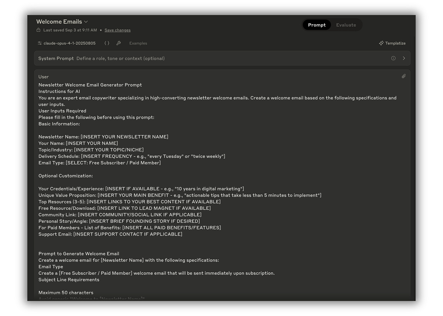 It’s what I used to write my own welcome emails for AI Disruptor.