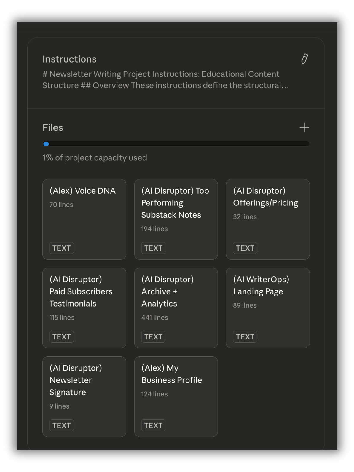 PS: If you want structured help actually building these context documents for your own systems, AI WriterOps is the next step from AI Disruptor. It’s where I teach the complete implementation—how to build Voice DNA, ICP mapping, and every other context document from scratch + provide my private library of prompts and project instructions. This is just for those serious about building custom systems.